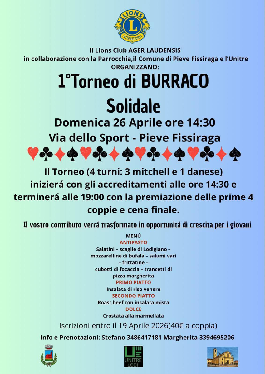 Torneo in 4 turni: 3 Mitchell e 1 Danese. Accrediti alle 14:30; conclusione alle 19:00 con premiazione delle prime 4 coppie e cena finale. Iscrizioni entro il 19 aprile 2026.