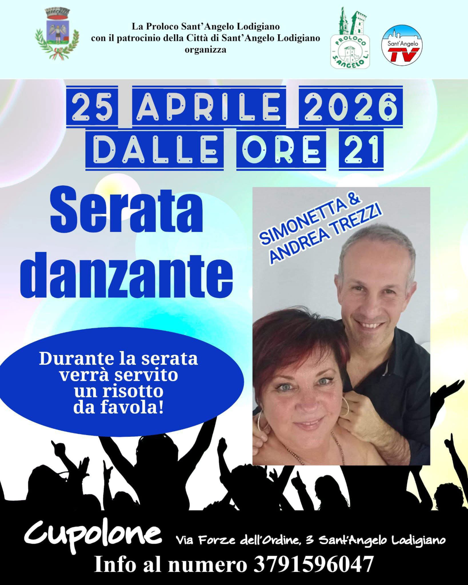 Serata danzante con Simonetta e Andrea Trezzi. Durante la serata verrà servito un risotto da favola.