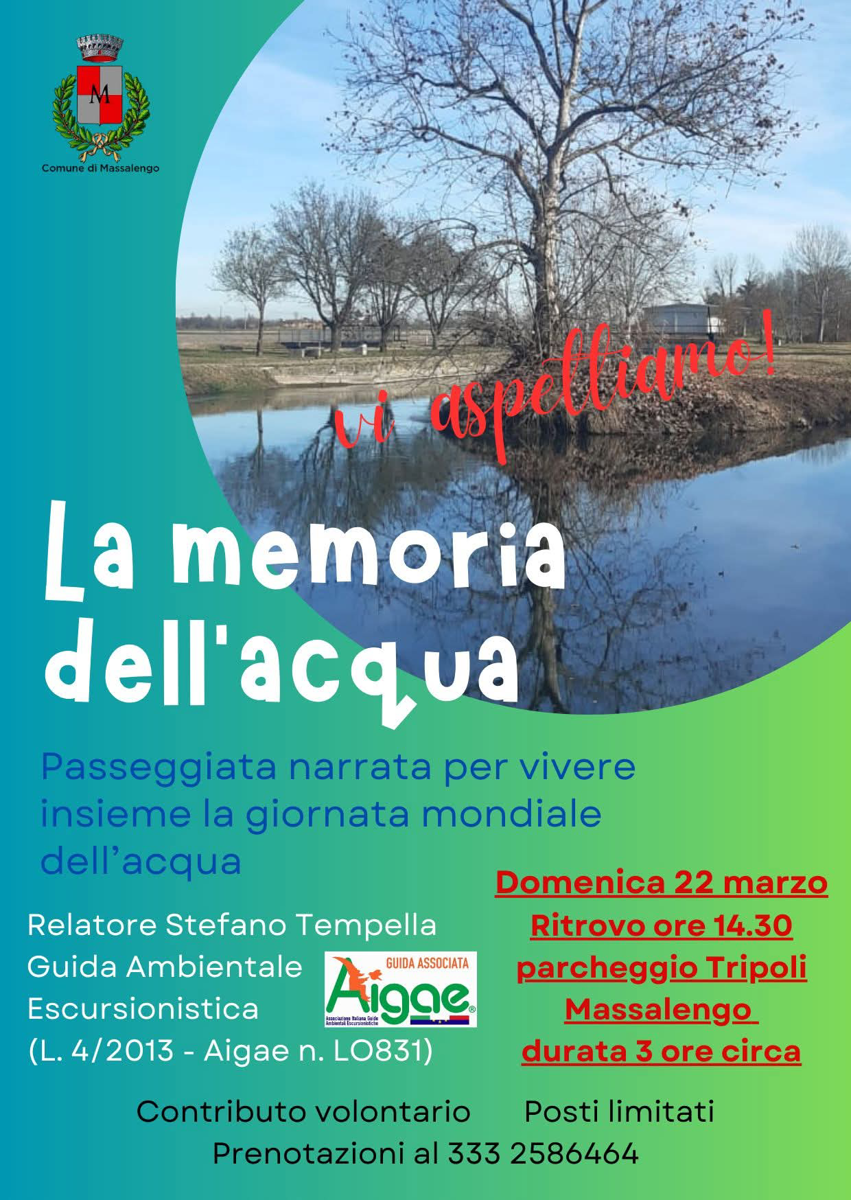 Passeggiata narrata per la Giornata mondiale dell’acqua con il relatore Stefano Tempella. Ritrovo al parcheggio Tripoli; durata circa 3 ore. Posti limitati.