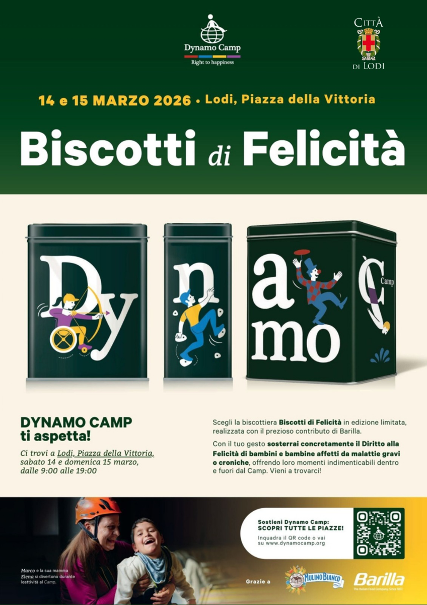 Stand di Dynamo Camp con la biscottiera “Biscotti di Felicità” in edizione limitata, realizzata con il contributo di Barilla. Il gesto sostiene attività per bambini e bambine con malattie gravi o croniche.