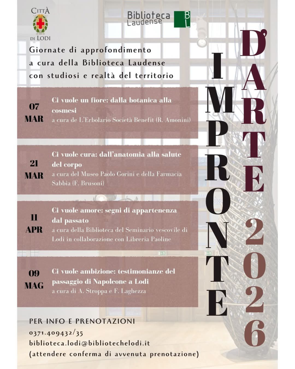 Info e prenotazioni: 0371 409432/35; biblioteca.lodi@bibliotechelodi.it. Attendere conferma di avvenuta prenotazione