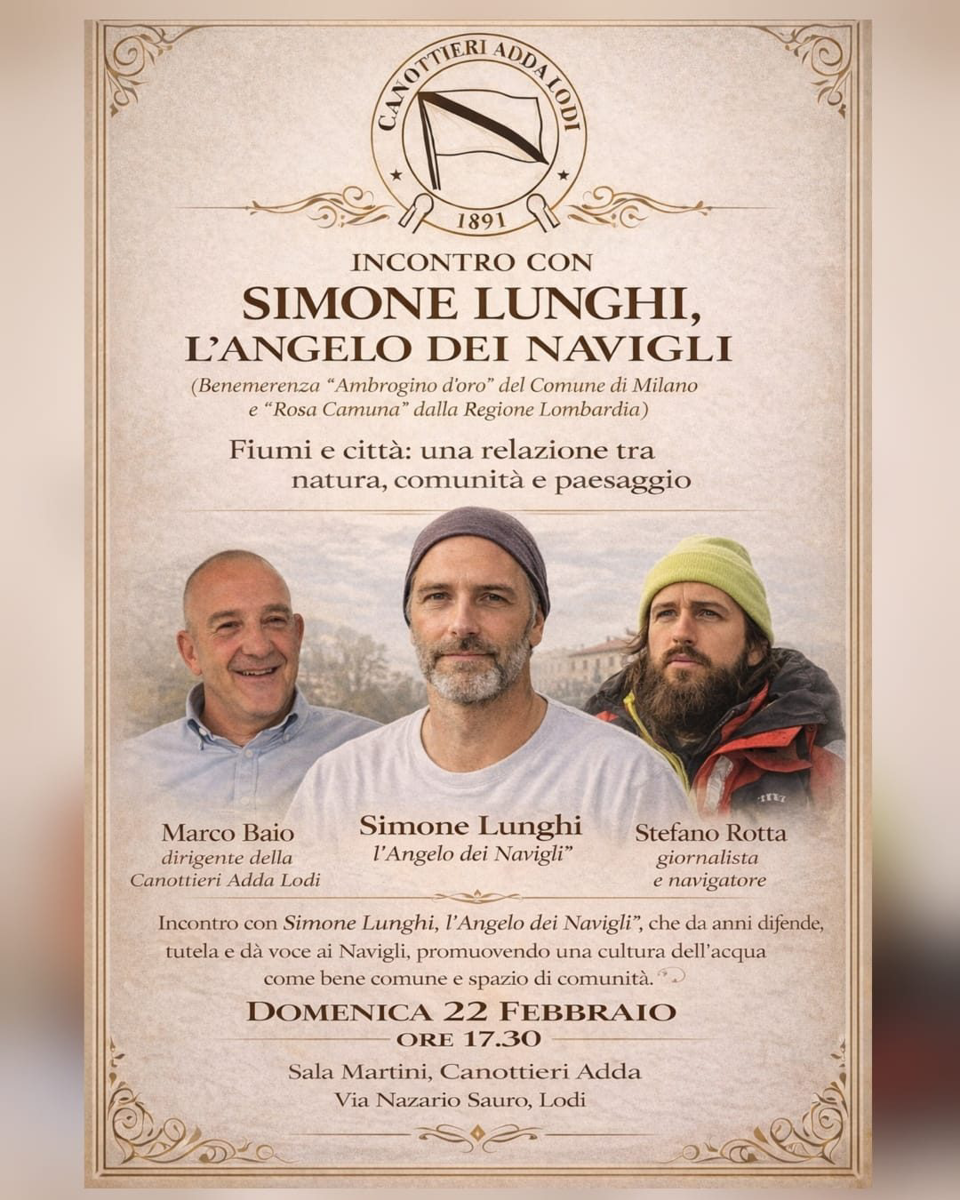 Incontro dedicato a “Fiumi e città: una relazione tra natura, comunità e paesaggio”. Con Simone Lunghi (Ambrogino d’oro, Rosa Camuna), insieme a Marco Baio e Stefano Rotta; focus sulla tutela dei Navigli e sulla cultura dell’acqua come bene comune e spazio di comunità.