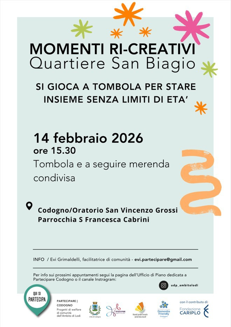 Info e prenotazioni: presso il bar dell’oratorio entro il 10 febbraio. È richiesto un acconto di €10 al momento della prenotazione.