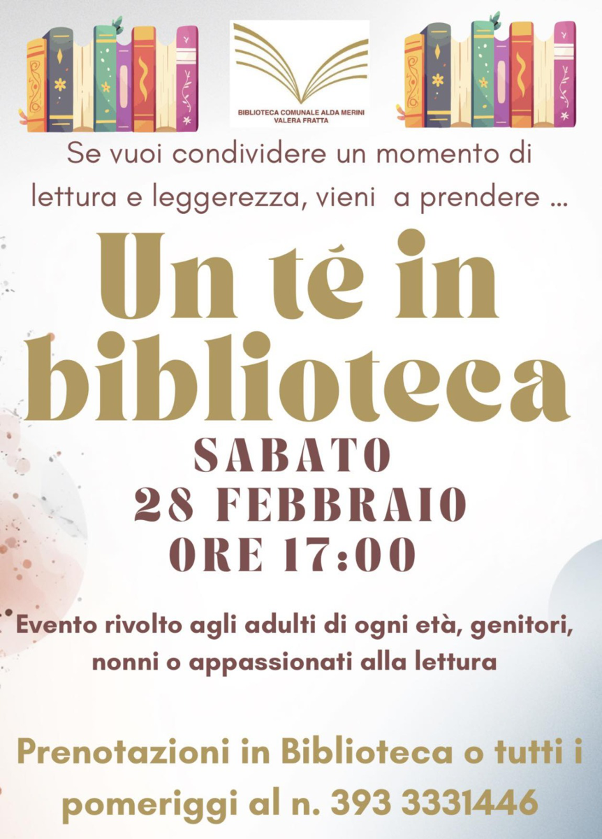 Info e prenotazioni: in biblioteca o tutti i pomeriggi al 393 3331446
