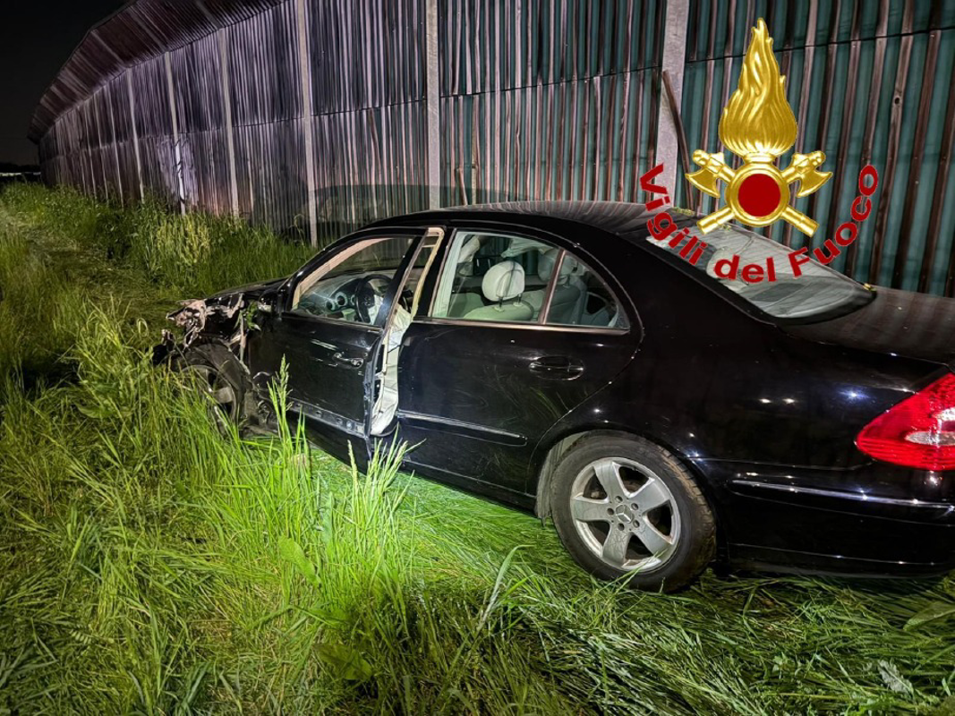 Lo scontro ha coinvolto due autovetture: una Mercedes Classe E e una seconda berlina, quest’ultima rimasta gravemente danneggiata nella parte anteriore a seguito dell’impatto.