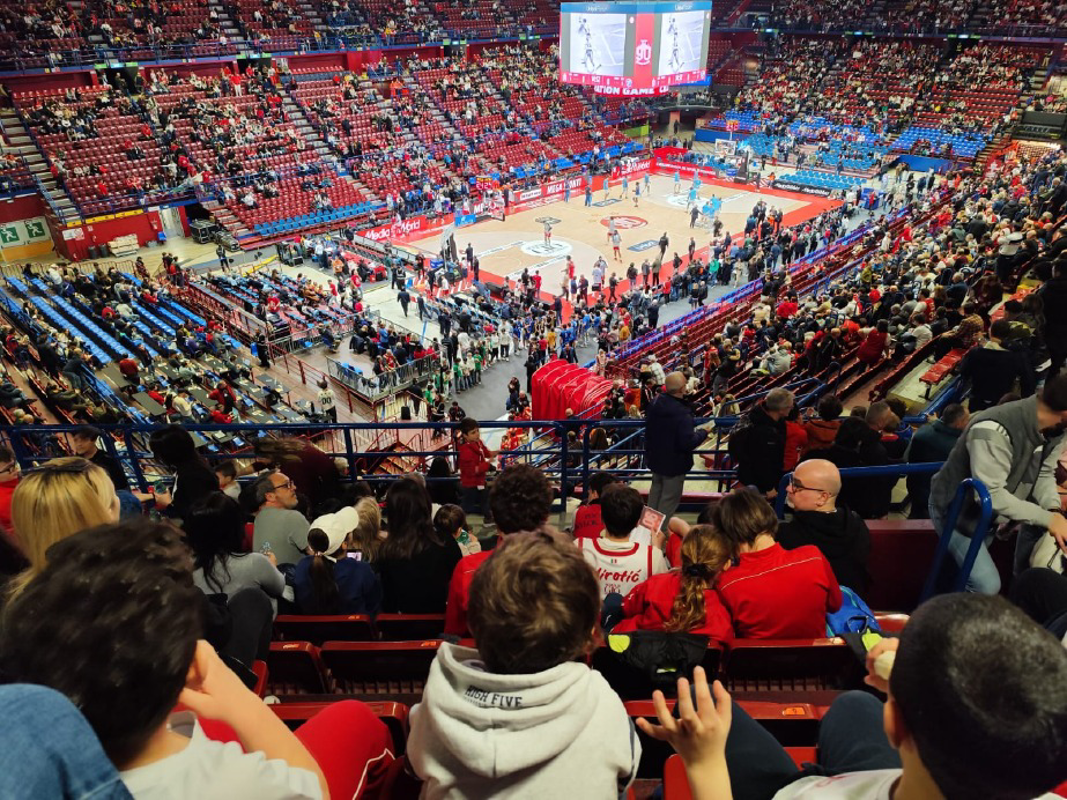 (Francesco Carrubba) Nella folla del Forum di Milano, accorsa per vedere la partita di basket dell'Armani Olimpia Milano contro il Sassari ieri pomeriggio, c'erano anche 15 bambini delle categorie Pulcini e Aquilotti della Fulgor di Lodi Vecchio: alla fine del secondo tempo, a metà match, hanno dato il cinque ai campioni della Serie A, a bordocampo, sotto i riflettori del palazzetto. Era un Celebration Game per festeggiare i 90 anni del club meneghino: tra le "leggende" convocate per l'occasione anche Vittorio Gallinari, storico cestista papà dell'azzurro Danilo, una famiglia di Sant'Angelo Lodigiano che ha dato tantissimo alla pallacanestro e allo sport.