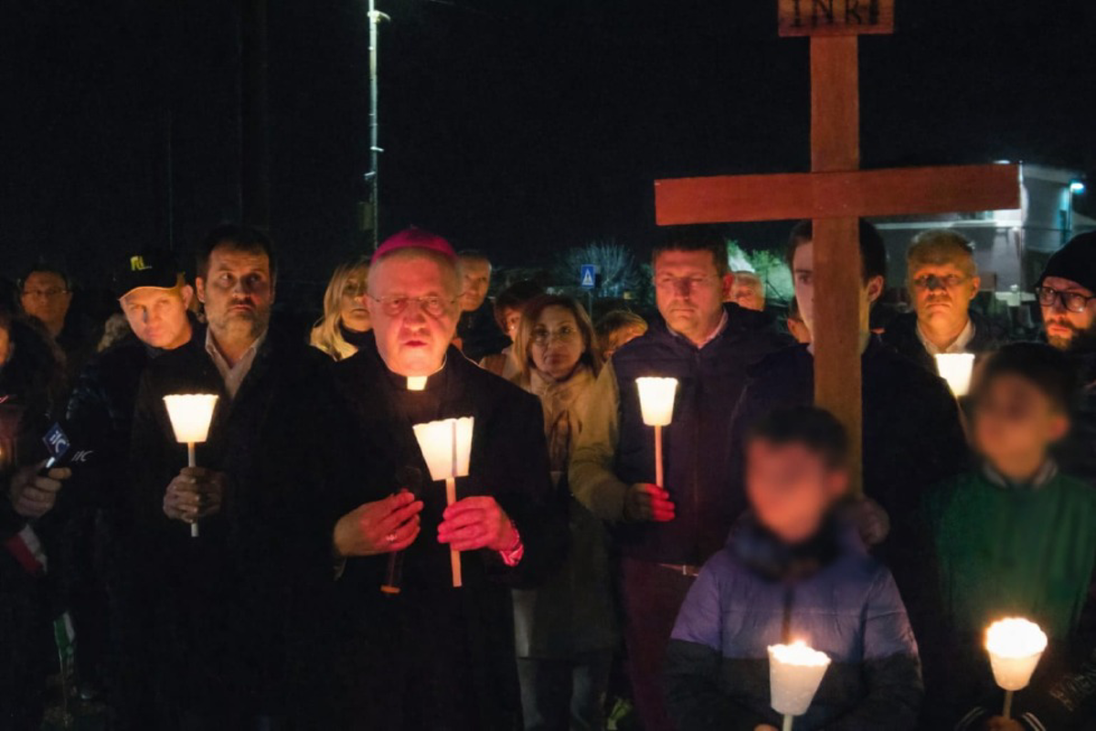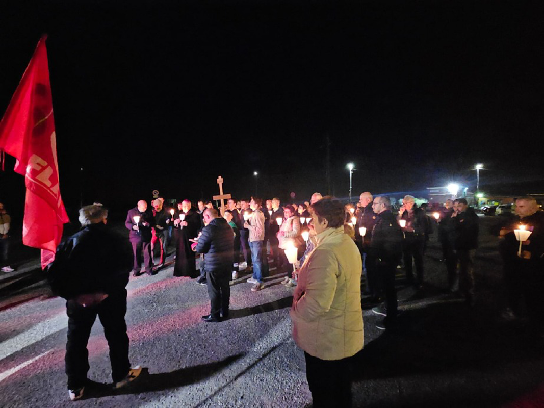 Illuminato dalle fiaccole della Via Crucis, monsignor Malvestiti ha pregato con i lavoratori e il parroco locale, al quale i lavoratori avevano inviato una lettera aperta, e ha anche rivolto loro riflessioni e incoraggiamenti.