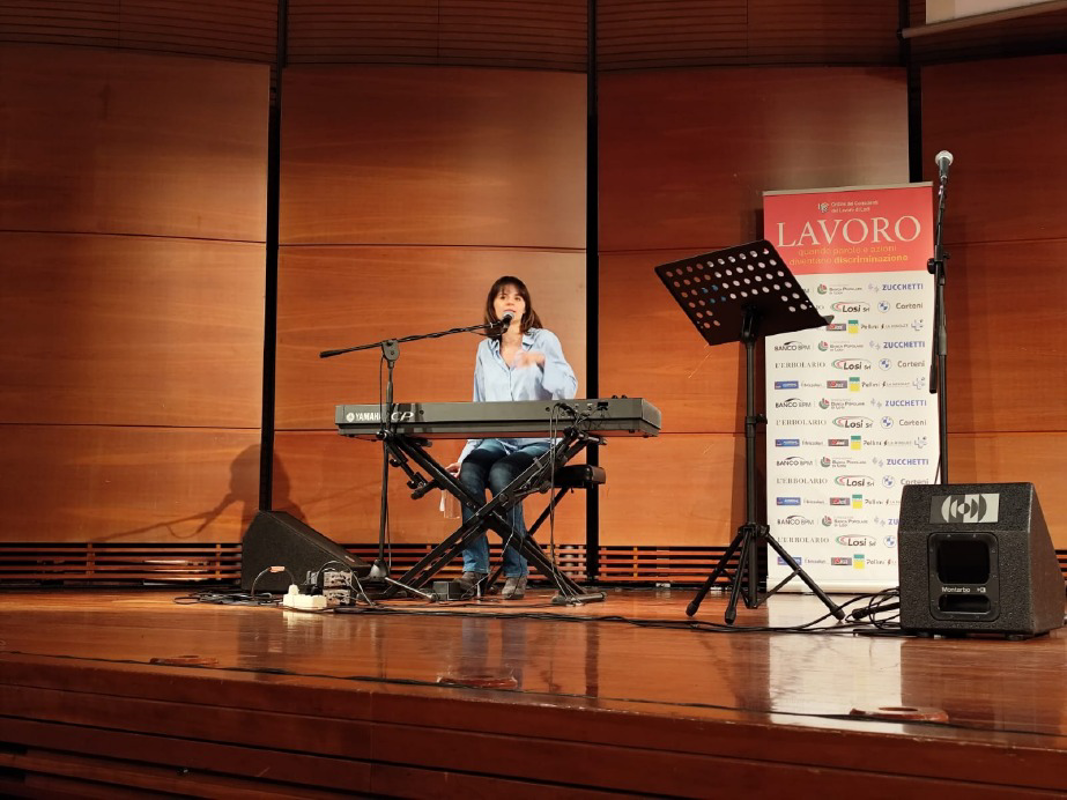 Poco prima, sullo stesso palco, è salita Michela Canavese, giovane musicista che spazia tra i generi: ha interpretato il brano “Come mi sento”.