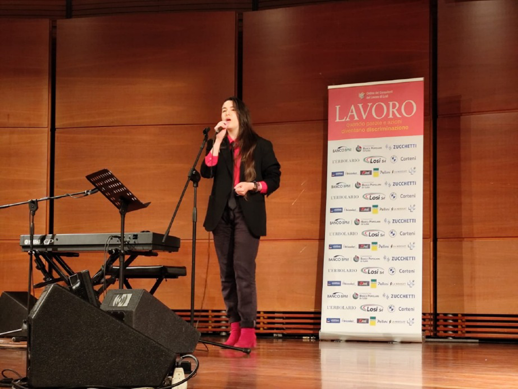 (Francesco Carrubba) Martina Attili, nota per aver partecipato al talent show X Factor 18, si è esibita questa mattina sul palco dell'Auditorium Tiziano Zalli di Lodi, accolta dalle urla e dagli applausi degli studenti delle scuole lodigiane, radunati qui per l'evento sul lavoro e le discriminazioni organizzato dall'Ordine dei Consulenti del Lavoro e promosso da Zucchetti.