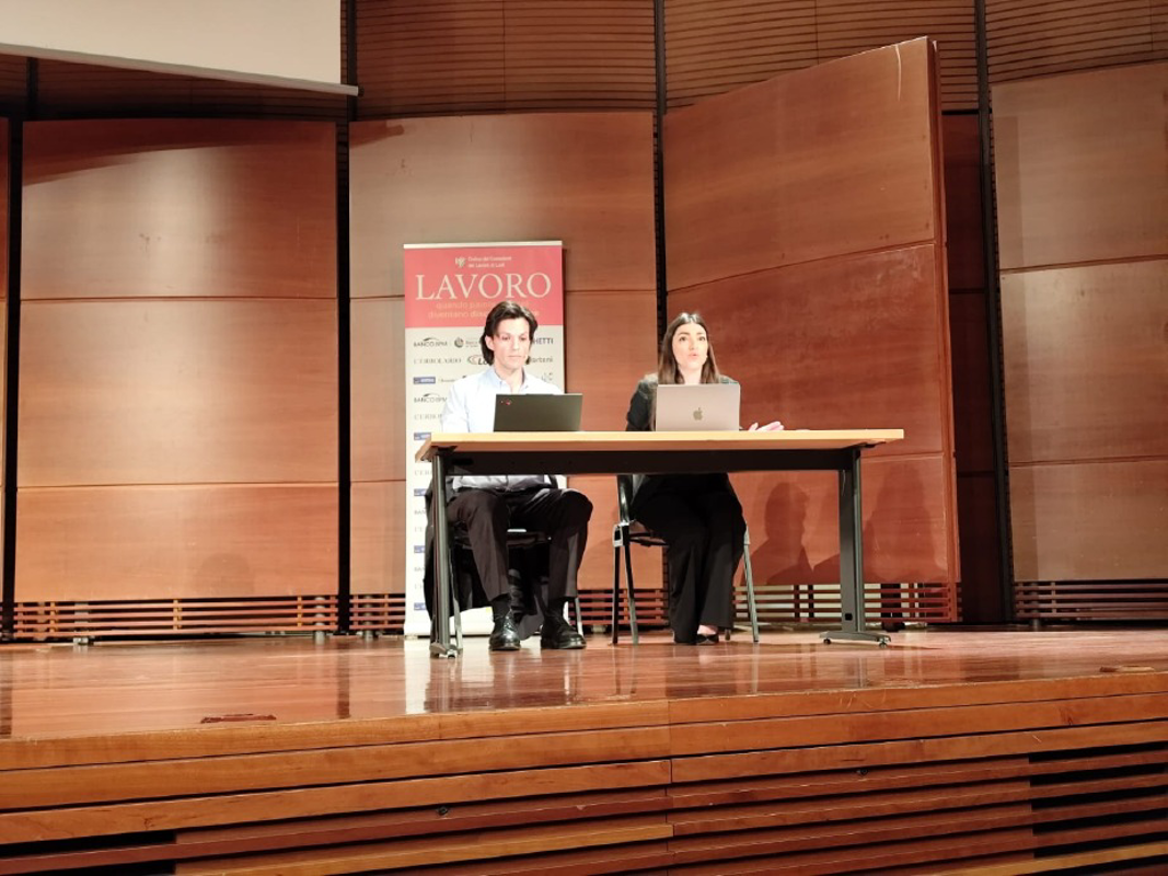 (Francesco Carrubba) L'evento sul lavoro e le discriminazioni, tenuto oggi all'Auditorium Tiziano Zalli dall'Ordine dei Consulenti del Lavoro di Lodi, prevede anche interventi artistici. Così due attori mettono in scena un caso di molestie verbali ai danni di una stagista al suo primo giorno. A spiegare l'idea alla base di questi “sketch” è Monica Rosano, avvocata: “Da 17 anni mi occupo di formazione nelle scuole, anche attraverso il teatro. I ragazzi hanno da dare quello che sentono”.