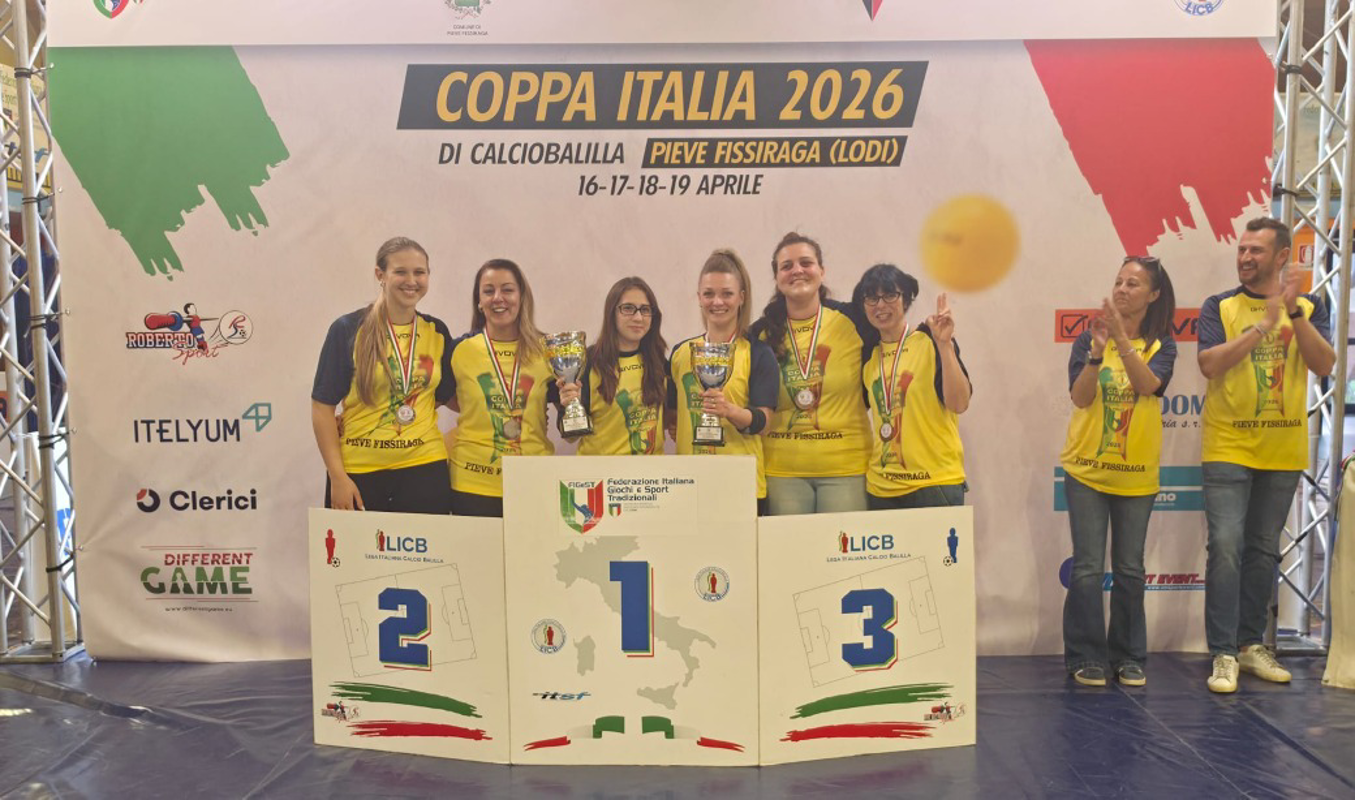 (Francesco Carrubba) La Coppa Italia di Calciobalilla a Pieve Fissiraga, specialità Roller Ball, si è conclusa nel tardo pomeriggio di ieri con la premiazione dei vincitori nelle varie specialità al termine di un intero weekend disputato al Centro Sportivo Polivalente Comunale in Via dello Sport. È stata un successo, anche nei numeri: 54 giocatori, 27 coppie, in rappresentanza di 10 regioni: Liguria, Sicilia, Abruzzo, Toscana, Puglia, Emilia-Romagna, Lombardia, Lazio, Piemonte, Marche. Ecco i vincitori: