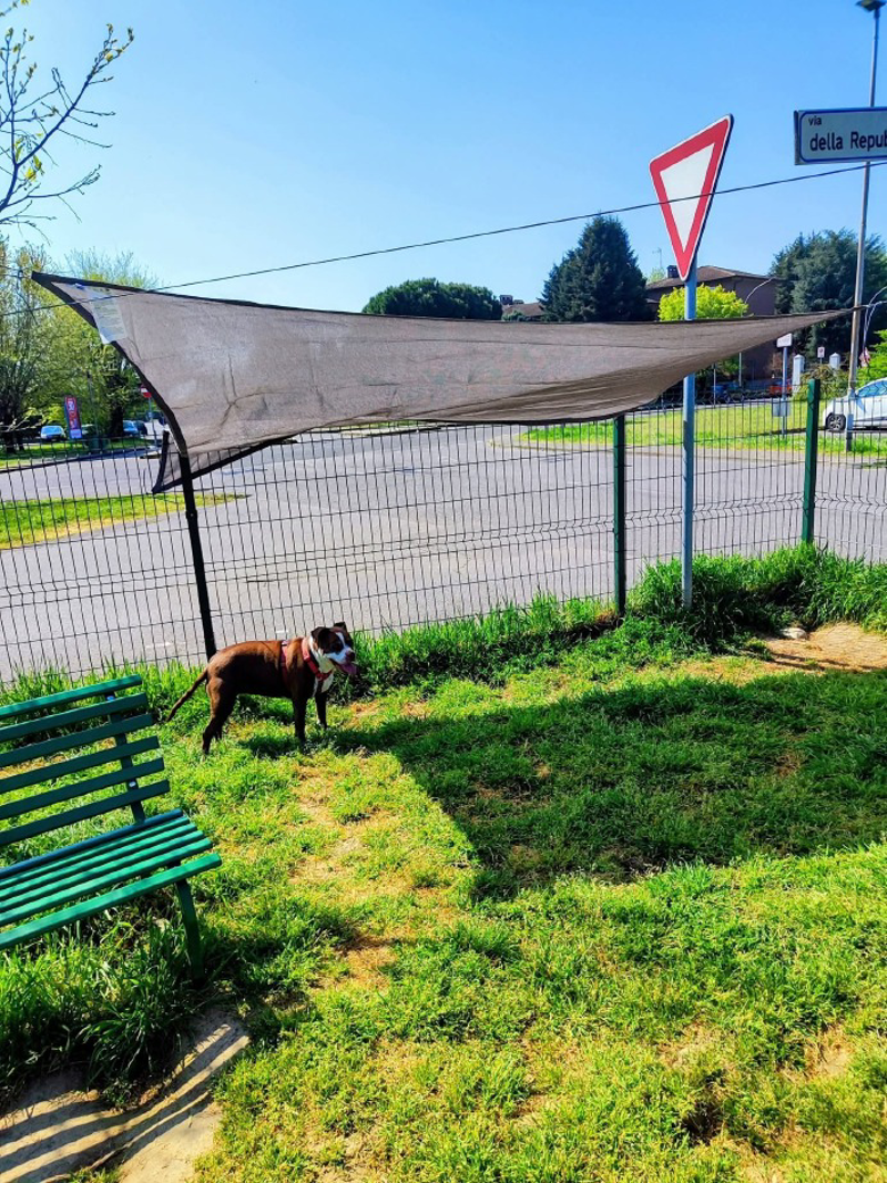 (Andrea Biraghi) Un telo per creare ombra dove non c’è. Nell’area cani di via della Repubblica alcuni cittadini sono intervenuti direttamente per rendere lo spazio più vivibile durante le giornate di caldo.