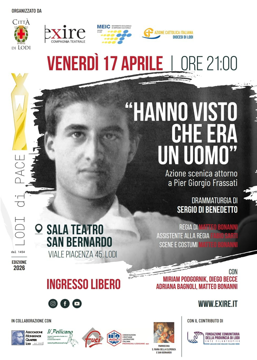 Azione scenica attorno a Pier Giorgio Frassati. Drammaturgia di Sergio Di Benedetto. Regia di Matteo Bonanni; assistente alla regia Fabio Sarti; scene e costumi Matteo Bonanni. Con Miriam Podgornik, Diego Becce, Adriana Bagnoli, Matteo Bonanni.